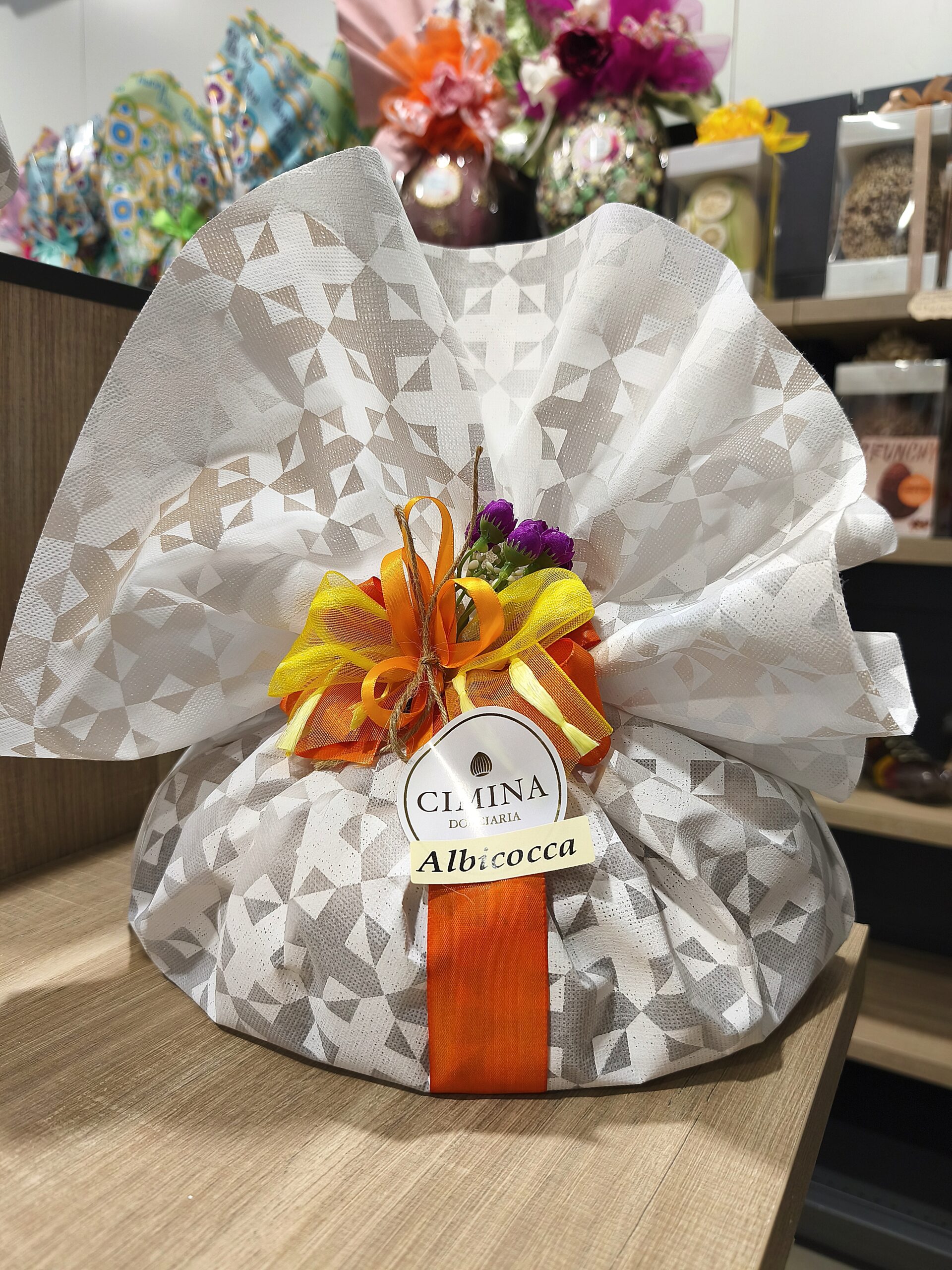 Colomba all’albicocca candite senza scorze di agrumi candite. Prodotto dolciario da forno a lievitazione naturale.